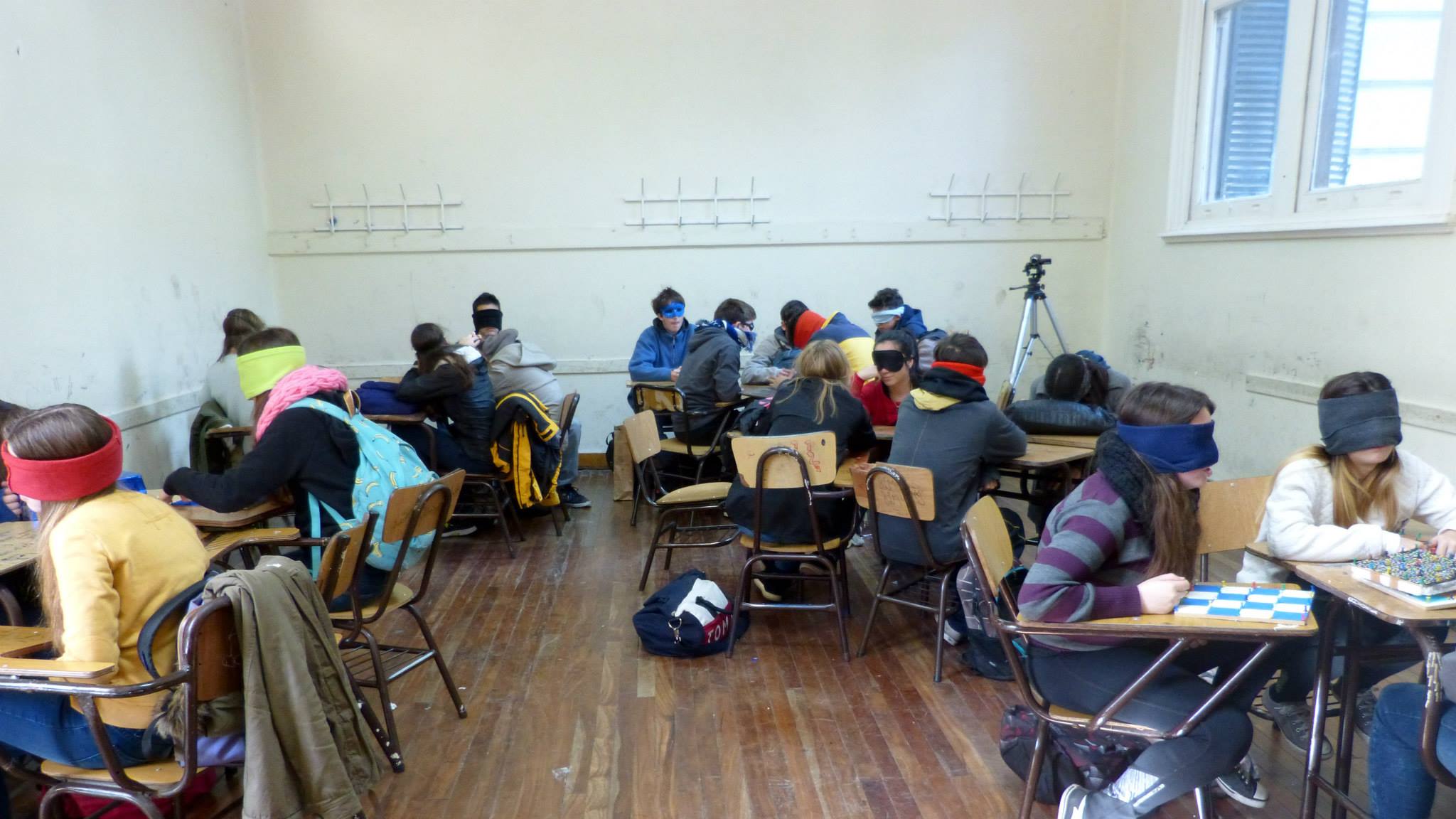 Estudiantes de 4º año del Colegio Nacional vivieron la experiencia de asistir a una clase de Matemática con los ojos vendados.
