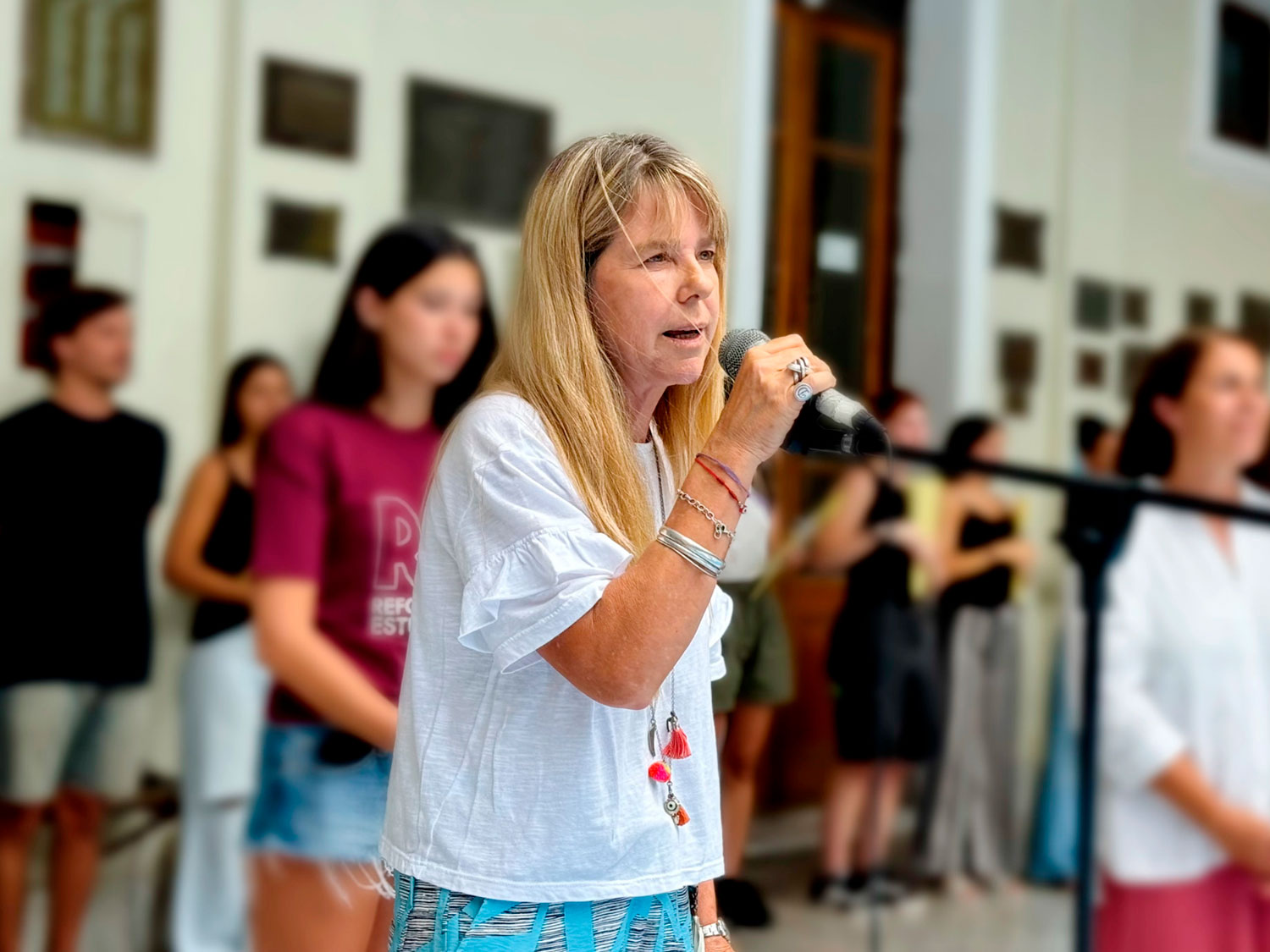 Acompañados por sus familiares, los estudiantes que hoy comenzaron el “Curso introductorio al nivel secundario”, fueron recibidos por la directora, Dominique Suffern Quirno y por la secretaria académica, Mariana Morales, además de la regente del turno tarde, Lia Doglia y la jefa de disciplina del turno mañana, Agustina Ciappa. En sus palabras de bienvenida, la directora destacó la importancia ser parte de un colegio que pertenece a la UNLP.