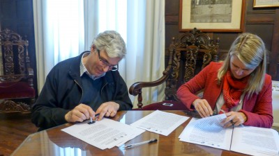 La directora del Colegio Nacional “Rafael Hernández” Prof. Ana María García Munitis y el decano de la Facultad de Ingeniería